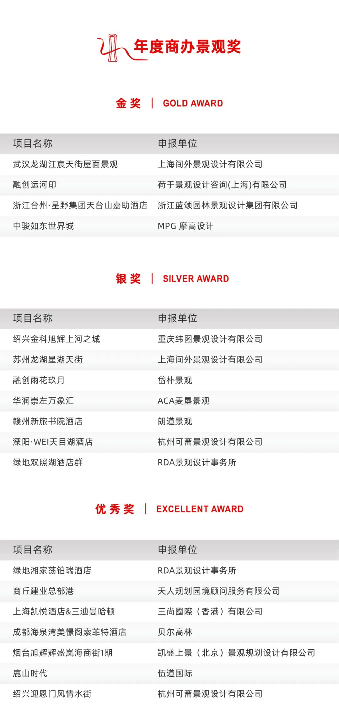 我们再一次恭喜诸位获奖公司,同时对参与此次大赛的众多公司,能在这疫情当前的时刻给予LIA园匠杯国际大赛以及园景人全网络平台的大力支持,深表感谢!