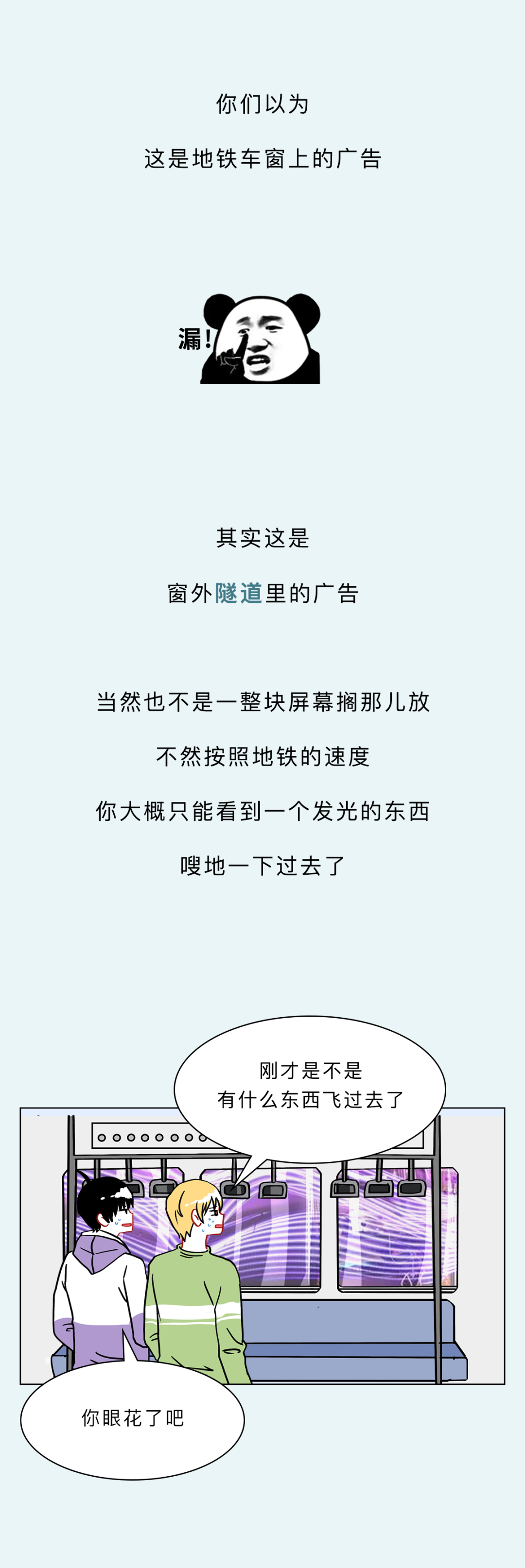 2.那个地铁广告,好像不是所有的地铁都有的,只有部分城市的部分线路有这种广告。我老觉得这种广告真的不适合放人的影像,看着就像窗外面飘着一个人一样,还到处都是,怪瘆得慌的