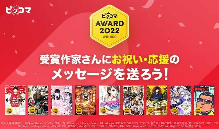 这次的奖项是以大约1600万名Piccoma用户从2021年3月到2022年2月阅读的全部作品为对象,从“读者数”、“销售额”、“点赞量”这三大类的上位作品中,选出3部漫画、3部条漫、3部轻小说的合计9部作品。