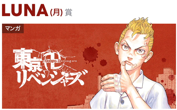 首先,此次漫画部门获得LUNA奖的是和久井健的《东京卍复仇者》——