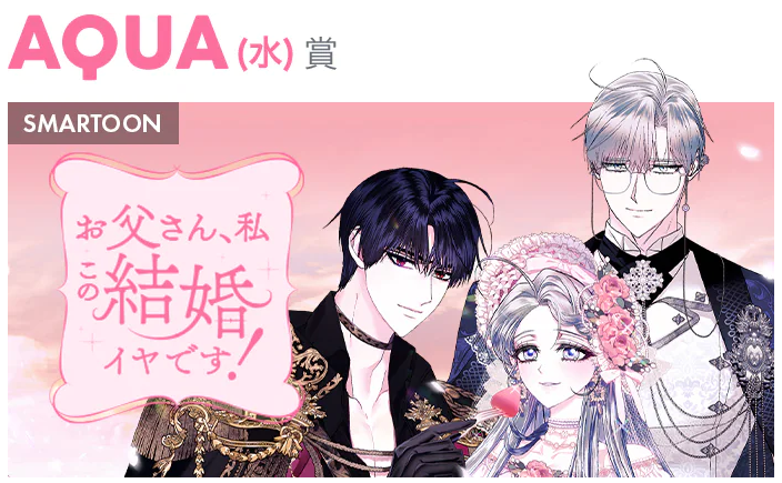 再来是条漫部门,获得AQUA奖的是Hong Heesu原作,yuri负责脚本,Roal担任作画的《爸,这个婚我不结!》——