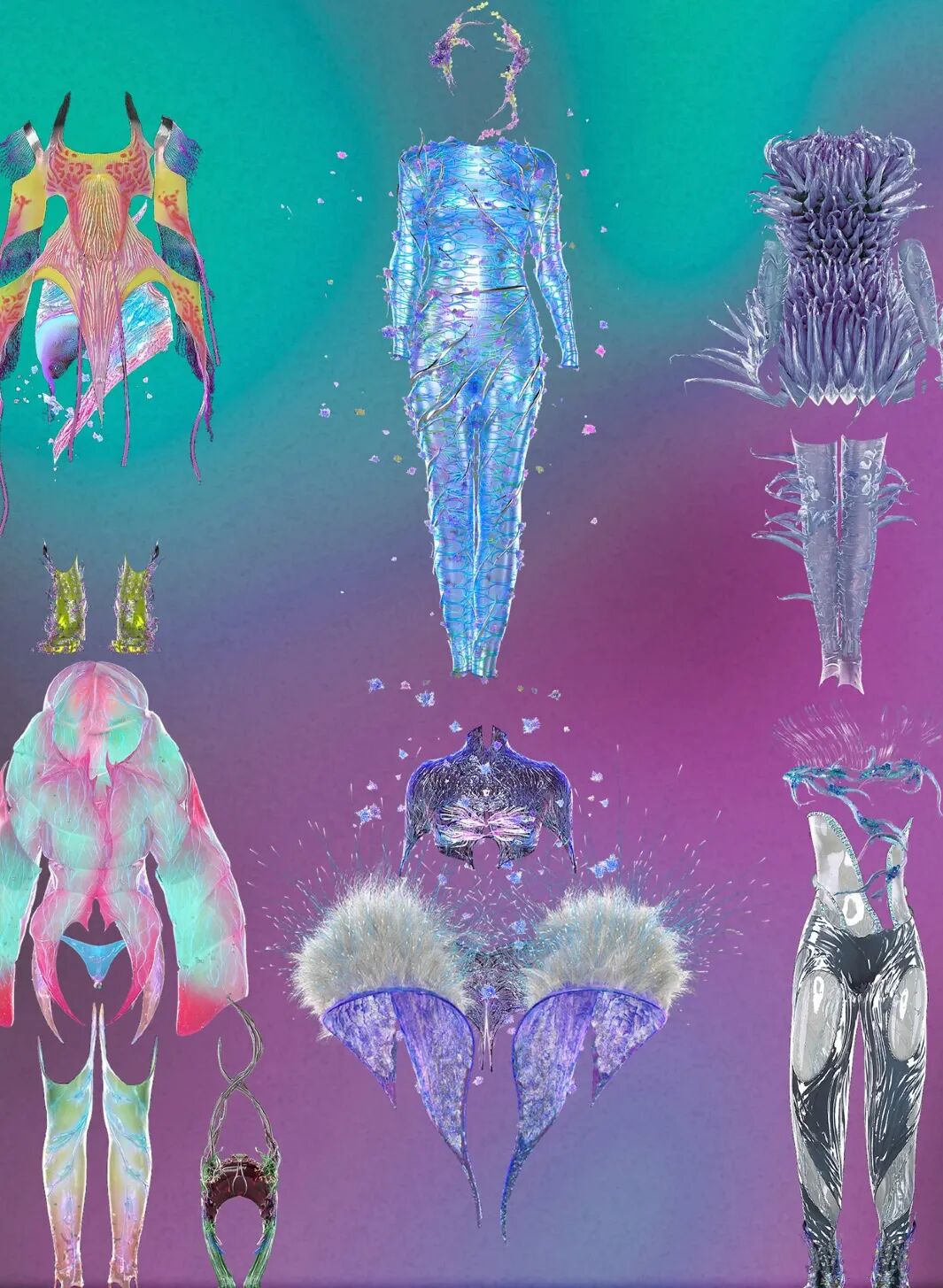 伦敦2022春夏时装周上,总部在伦敦的数字时尚品牌Auroboros发布了一场动态数字时装秀,以自然与科技的结合为灵感。