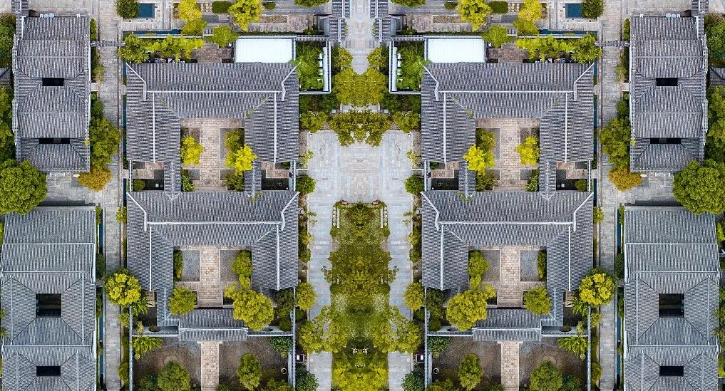 因此,你可以在现在的建筑文本中找到一套不可戳破的”暗号代码“:花园=中国园林;小院子=南方天井;大院子=传统四合院;红色=中国红;坡屋顶=传统民居;墙上开洞=园林借景......