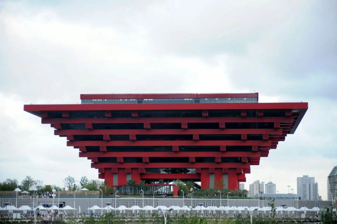 当然除此以外,还有许多美好的愿景被“设计”其中:中国馆的屋顶平台设计为花园取名“新九州清晏”,以屋顶平台开阔的中心广场象征内湖水面,以九处园林景观象征九个岛屿;此外,建筑的颜色选取了代表中国特色的中国红。该建筑利用各个方面来的设计来体现中国地域特色和文化内涵。