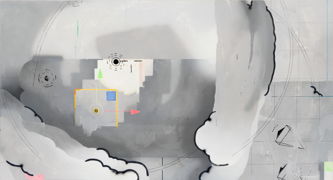 罗然的工作内容是关注当下视觉图景以及生成种种图景背后的逻辑。他把这种关注和探索理解为一场游戏,艺术家可以同时成为游戏的体验者和制作者,其中的趣味意在不断发现和制造隐秘且复杂的彩蛋。在类似于匀速直线运动的语境中,他将现在虚拟软件中对物的介入方式,以不同工具特性的轨迹,转化成为绘画可以进行的工作逻辑,重新编辑不同维度之间的界限,尝试讨论一种在现实中悬空的节奏、运动、关联、边界和秩序。