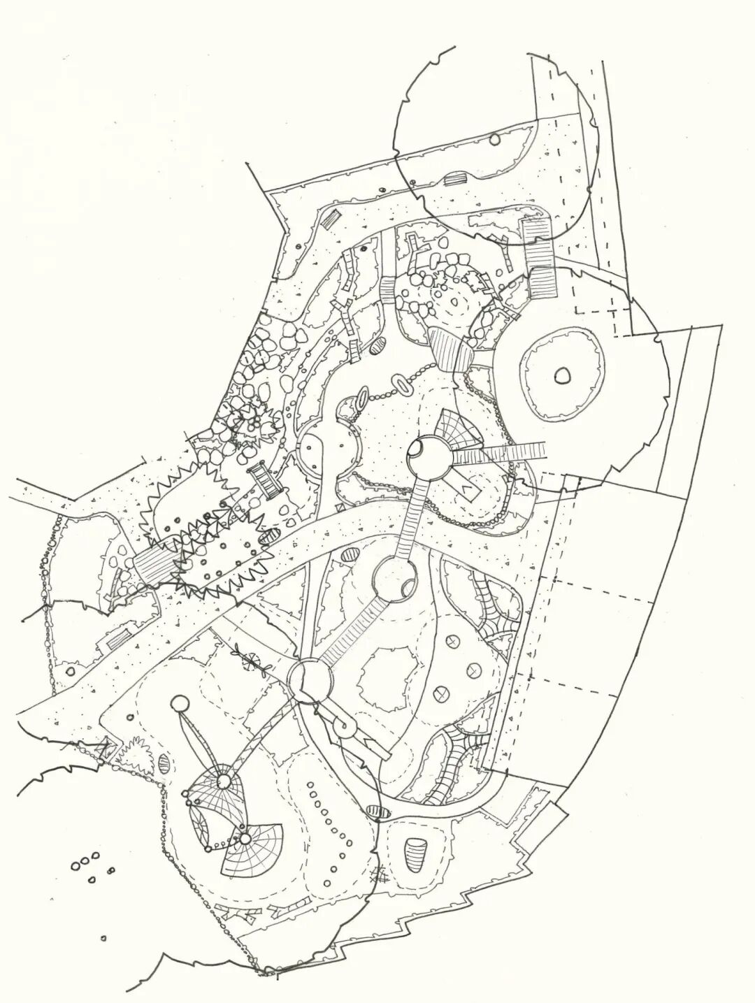 Many elements of the site were reclaimed and repurposed including rocks, logs, seats, sculptures, paving, mulches, and soils.
