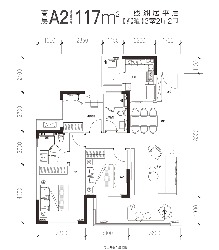 和普通的户型相比,117㎡户型阳台部分实现了超6m的观景面,使得整个室内都极其通透。值得一提的是,117㎡户型曾一度成为整个东安湖片区的爆款户型,极具性价比。