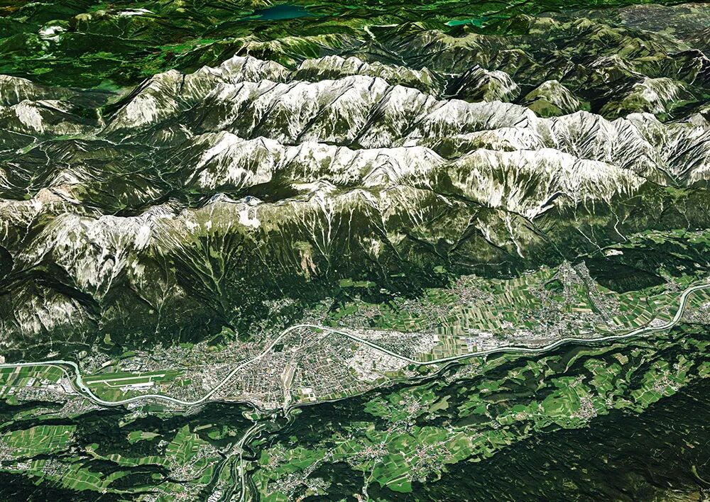 ▼ 因斯布鲁克格外注重山峰、城市的天际线打造