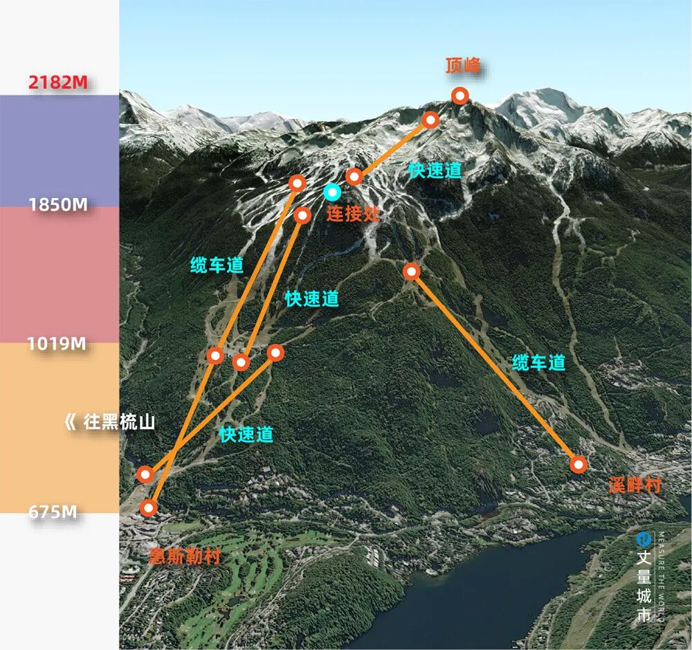 ▼ 惠斯勒村位于惠斯勒山和黑梳山的交汇处