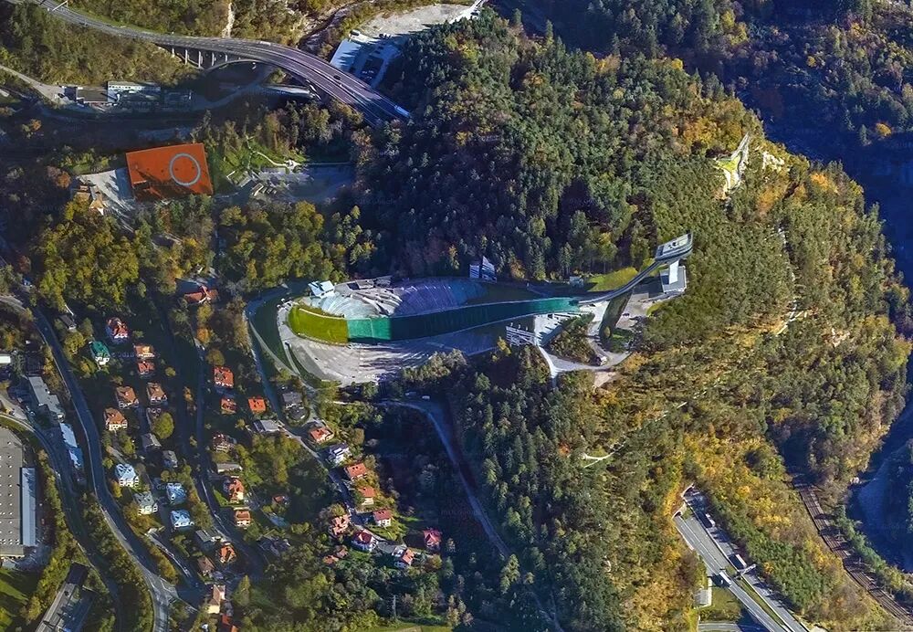 奥运会的贝吉塞尔跳台于2001年重建,著名建筑师扎哈·哈迪德在滑雪跳台的结构之上巧妙整合了餐厅和观景台,将运动设施和公共功能优雅地结合在一起,俯瞰整个城市,成为因斯布鲁克醒目的城市地标。