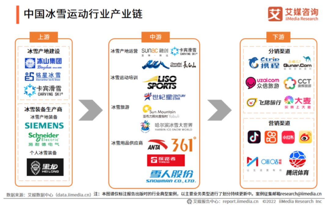 与此同时,以冬奥会为契机的“冰雪+”跨界融合商业模式,也在加速冰雪行业升级,有望在未来开发出更多潜在增长点,包括上游的产地建设、装备生产;中游的运动培训、用品供应;以及下游的市场分销、营销渠道等。