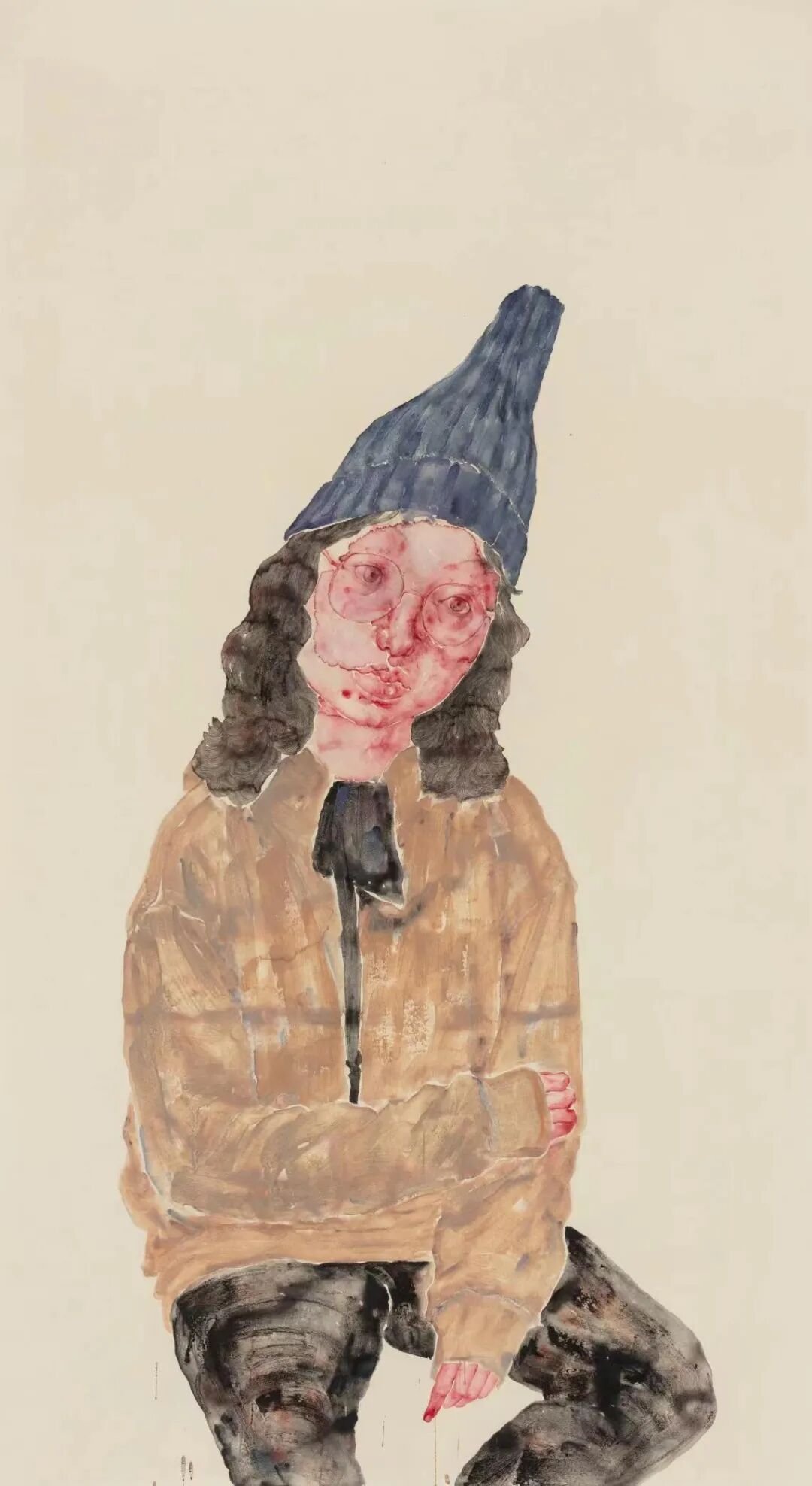 驻足(156厘米) 2021年木材、薄浆、织物、丙烯颜料、树脂、塑泥、金属、 金属线