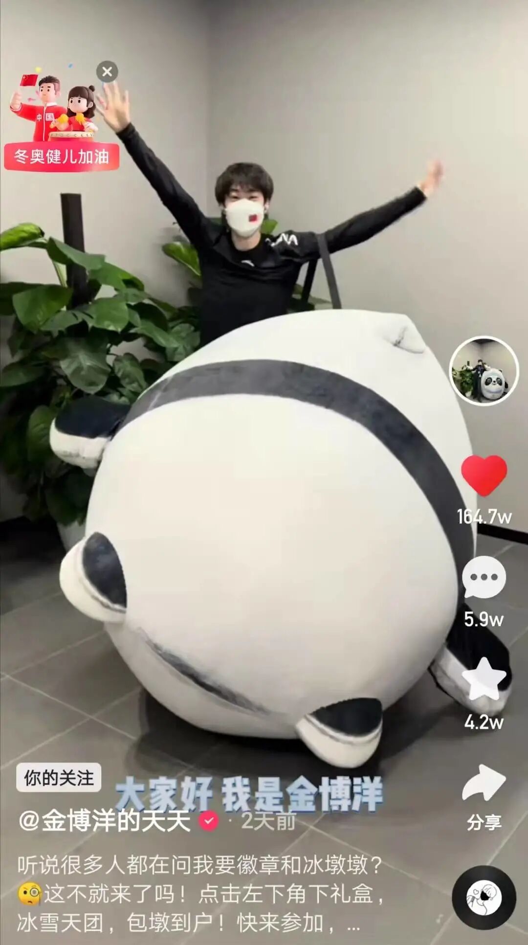 “痛失”可爱的冬奥会吉祥物后,金博洋在自己的快手直播间送出66个冰墩墩,引发大量用户关注和留言,一天之内涨粉200万,再度成为全网热议话题。
