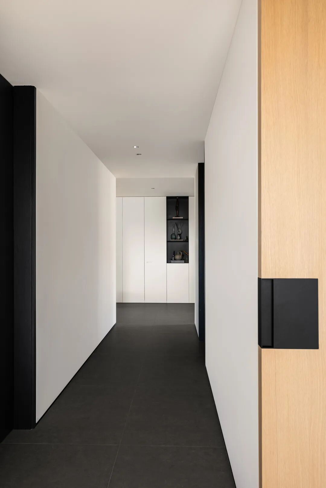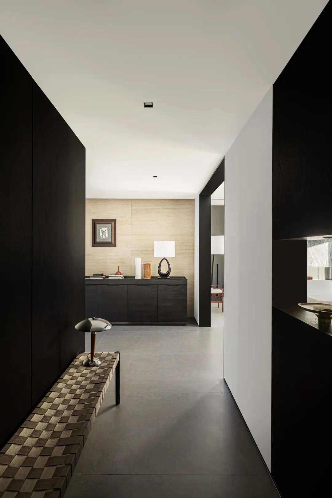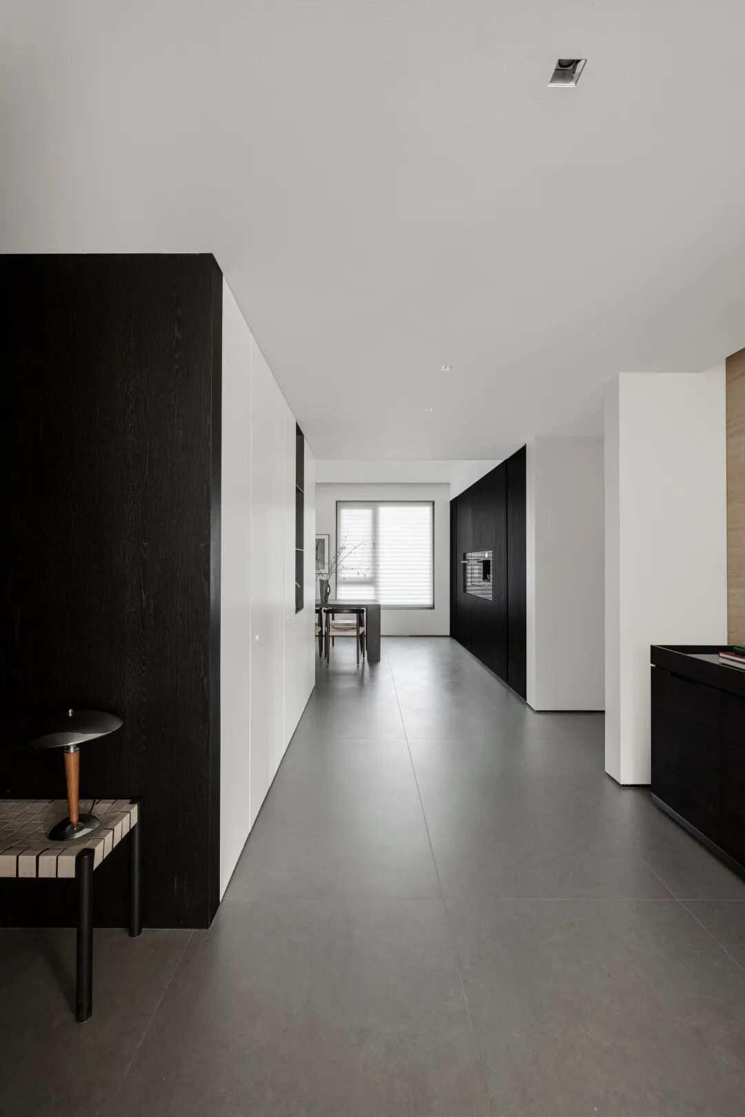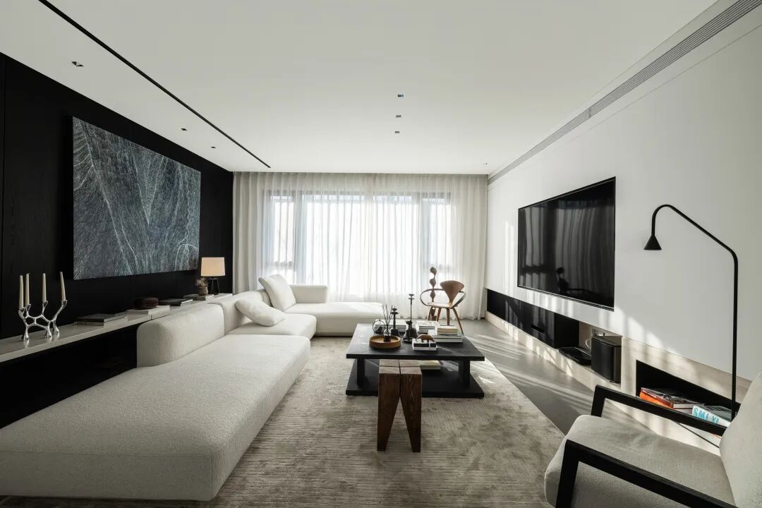 构建功能,也是在构建生活的秩序,通过一条走廊,将公共区域与私密空间巧妙连接,形成了动静分离的结构。宽敞的公共空间,给予宅家无限自由,去除了杂色,只保留宁静深沉的底色,映射出当下在日常中收获满足的纯粹状态。