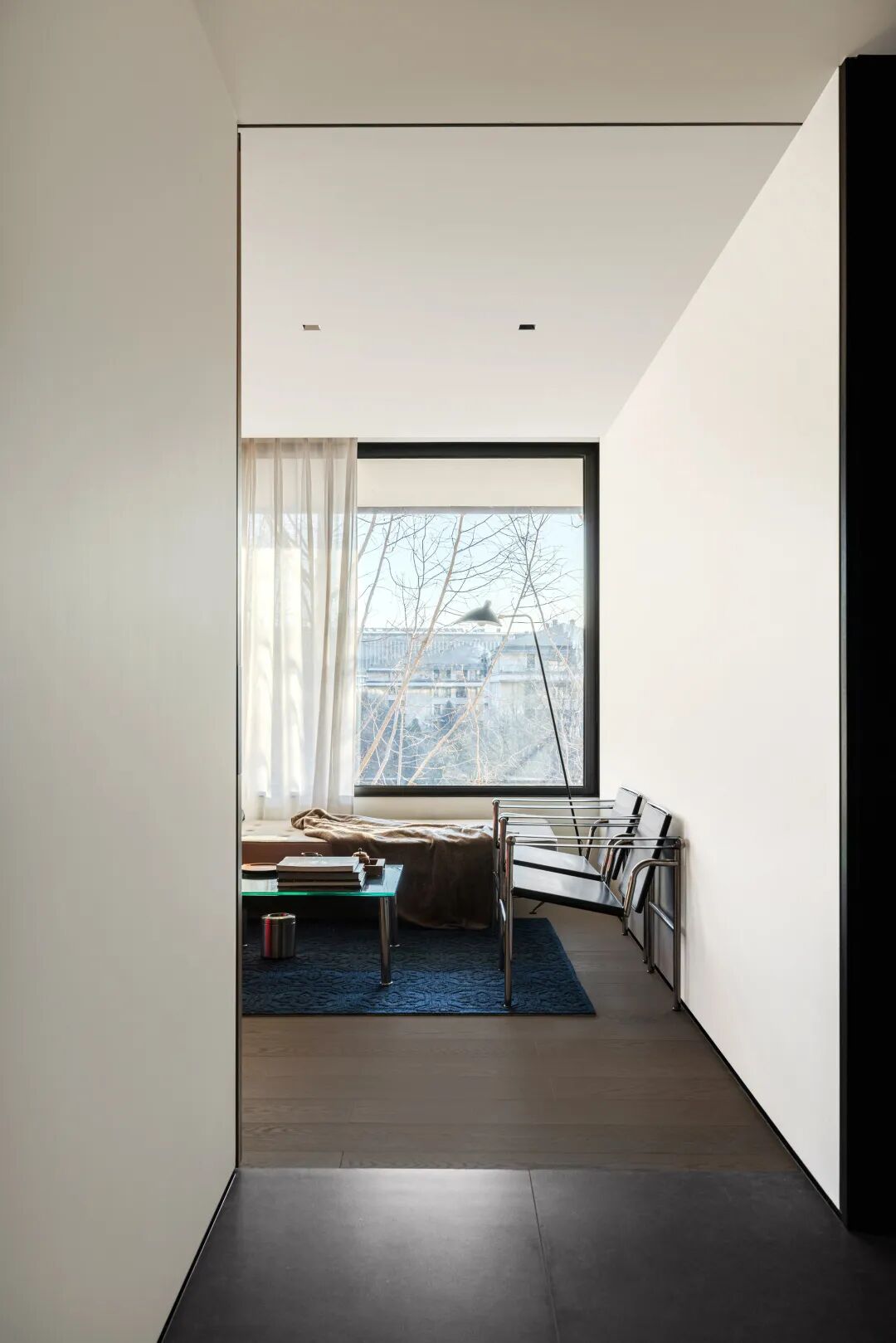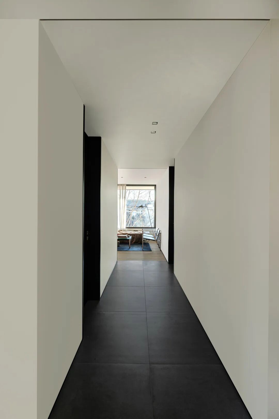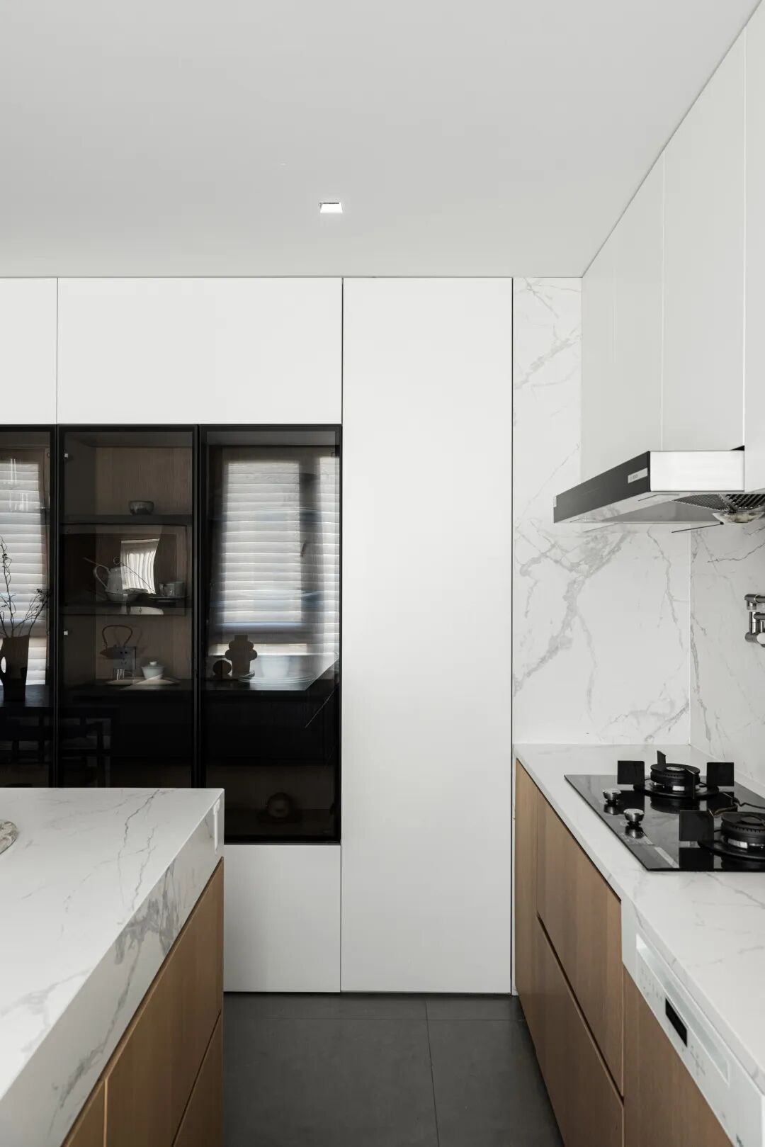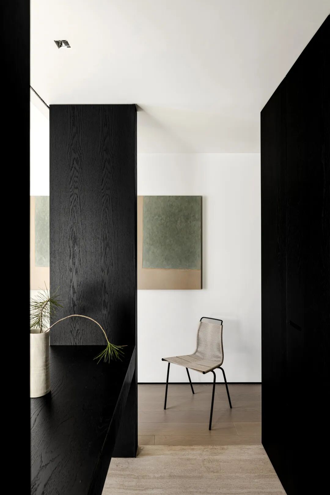 构建功能,也是在构建生活的秩序,通过一条走廊,将公共区域与私密空间巧妙连接,形成了动静分离的结构。宽敞的公共空间,给予宅家无限自由,去除了杂色,只保留宁静深沉的底色,映射出当下在日常中收获满足的纯粹状态。