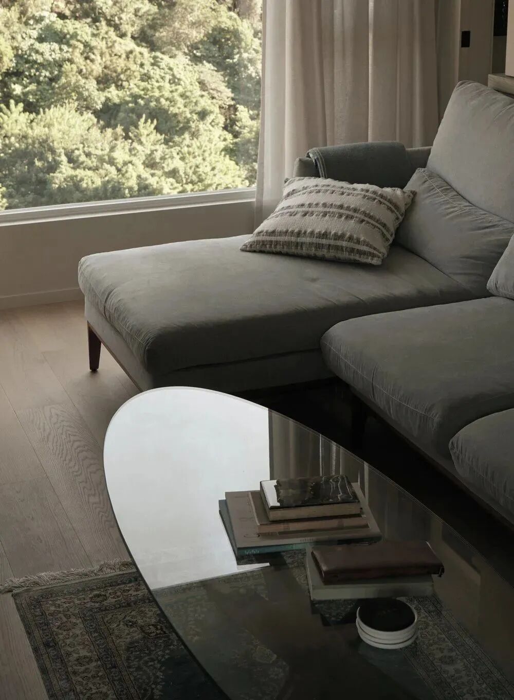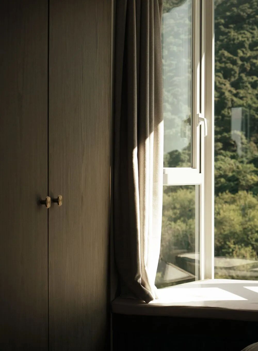 大面积落地窗景,转移视觉中心,扩充空间观感。凸显自然和谐的风景意味。