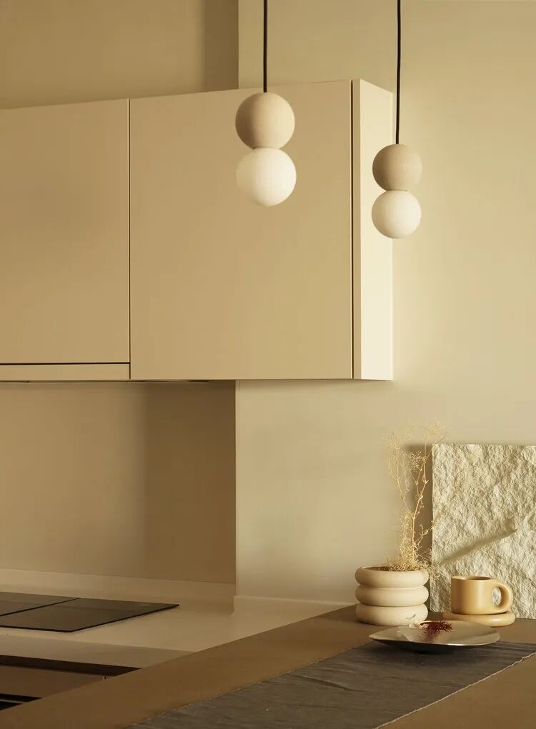 为了与家居的简约并置,每件家具都经过定制设计,具有雕塑感——包括胡桃木书桌、边桌、大理石餐桌和座椅。圆圈与曲线和直线的交织带来了空间之间的无缝过渡,软化了它们的划分。住宅采用统一的中性色调调色板,在柔和的枝形吊灯照明下,为空间注入温馨的氛围。