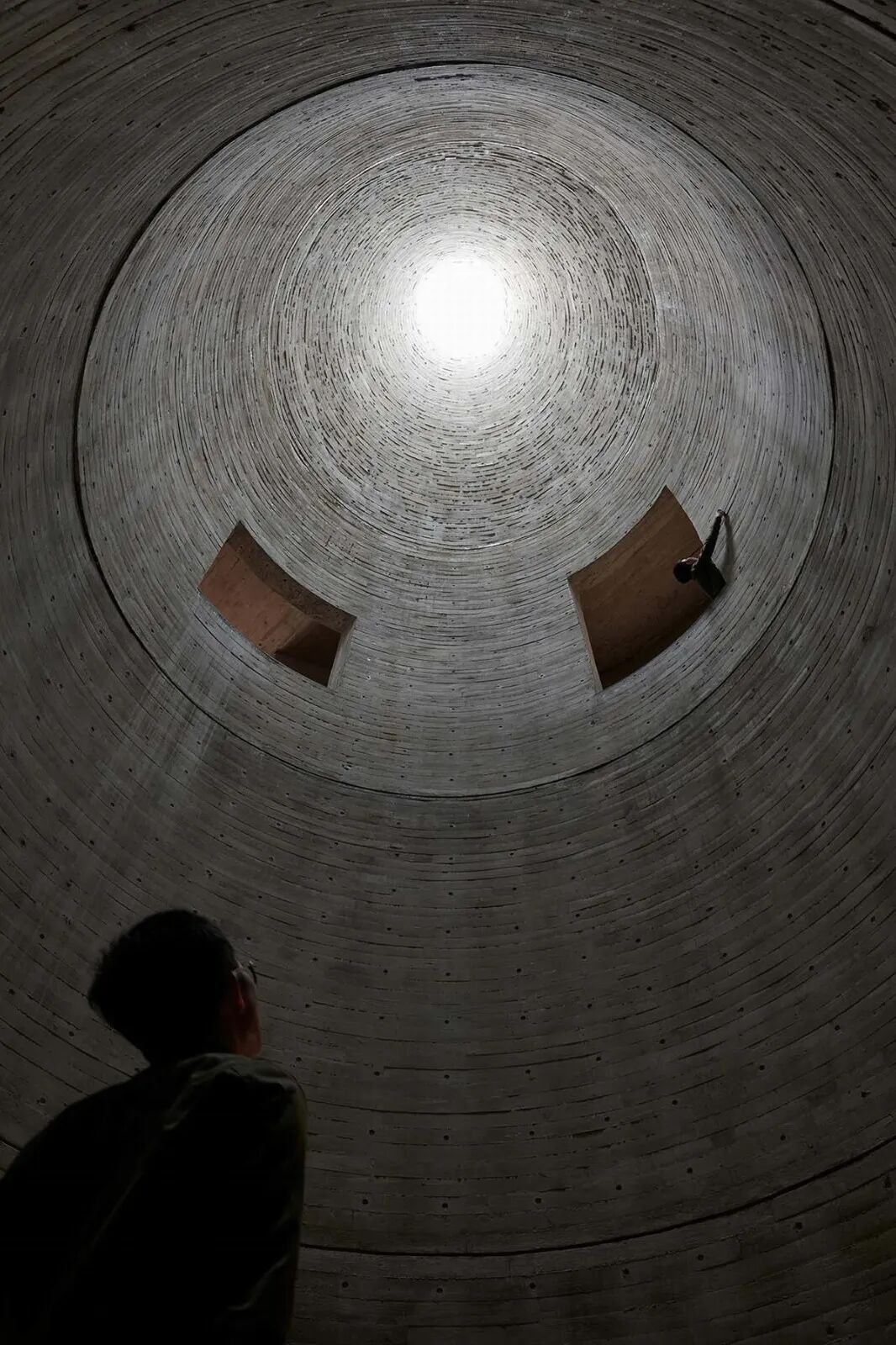 建筑内部的光塔是这座建筑记录的起点,建筑师以砖墙为纸,以光线作笔,吸引每一个观者驻足、仰视。