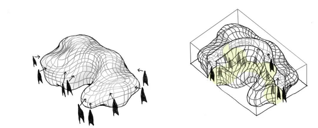 投射在各种材质表面的三维景观则进一步激活了展览空间。