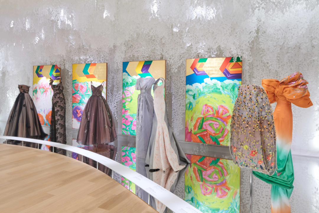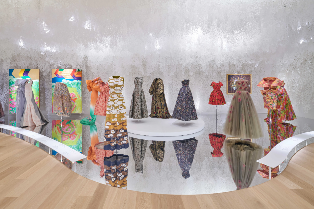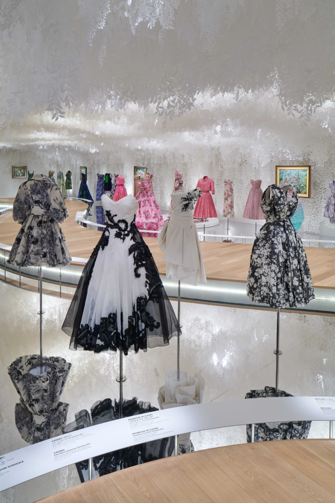 展馆 9 名叫迪奥小姐的花园「ミス ディオールの庭」,该展厅的设计是为了能够展示所有受花和花园启发的梦幻连衣裙而创造的。