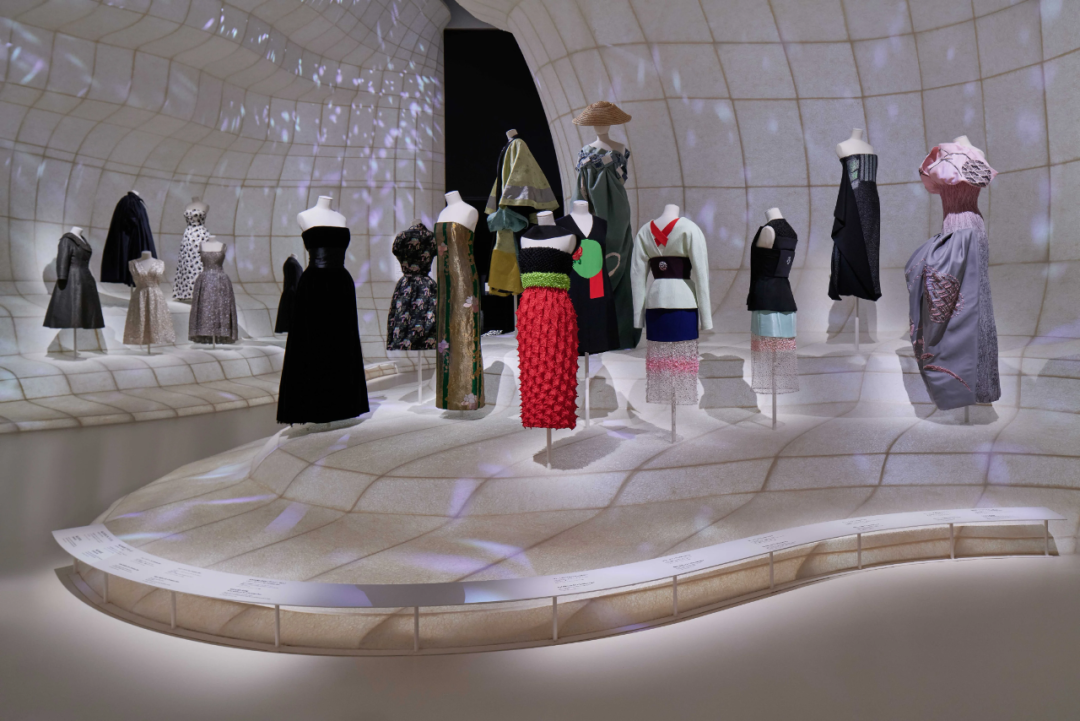 在此前迪奥的巡展中,于美国丹佛艺术博物馆和达拉斯艺术博物馆举办的《从巴黎到世界》奠定了展览连续的叙事脉络,每个展厅中的服装和艺术品以流畅的时间线无缝衔接在一起,在统一的背景环境下熠熠生辉,向大众展示出迪奥自创建以来 70 多年的历史。