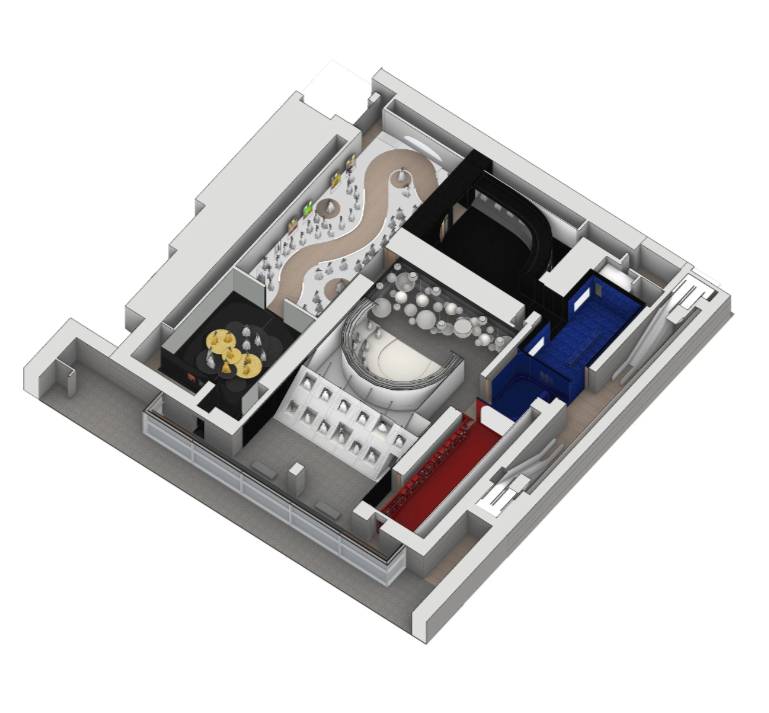 该博物馆位于 OMA 构想的空间内,是由两层楼组成的独立沉浸式环境,共 12 个场馆,22 个主题展览空间,被规划在一系列独立的、特定的、沉浸式环境中。