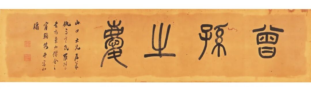 款识:山口大兄属篆,仇亭老民罗振玉书于东山旧舍之宾翰楼云窗北。
