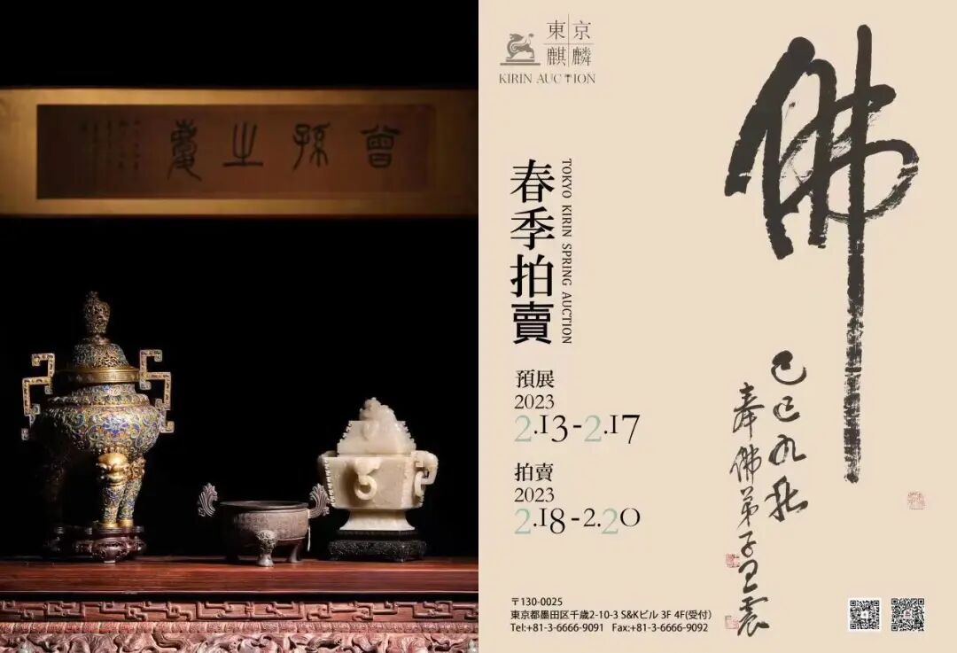 东京麒麟春季拍卖将于2023年2月18-20日在东京本社举槌。在竞争激烈的日本艺术品拍卖市场,东京麒麟整合800余件生货的规模殊为难得,在本季拍卖中,东京麒麟将为广大的藏家整合六大专场,分别为东京麒麟的品牌专场【稷古|麒麟集粹专场】、【妙笔丹青——书画专场】、【东瀛艺藏——骨董专场】、【清玩雅趣-无底价专场】、【名酒佳酿——茅台酒专场】以及本年新增的【融合——现代艺术专场】。