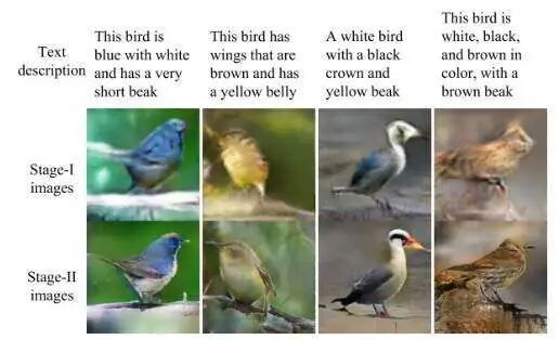 文本到图像是域转移GAN的早期应用之一。比如,我们输入一个句子就可以生成多个符合描述的图像。StackGAN就能实现从文本到图像