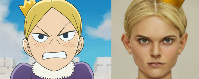 还能将动漫人物真人化,前段时间火爆二次元圈的纸片人AI化就是StyleGAN的技术,来看看最近最火的《国王排名》波吉、卡克和二王子AI化长啥样?