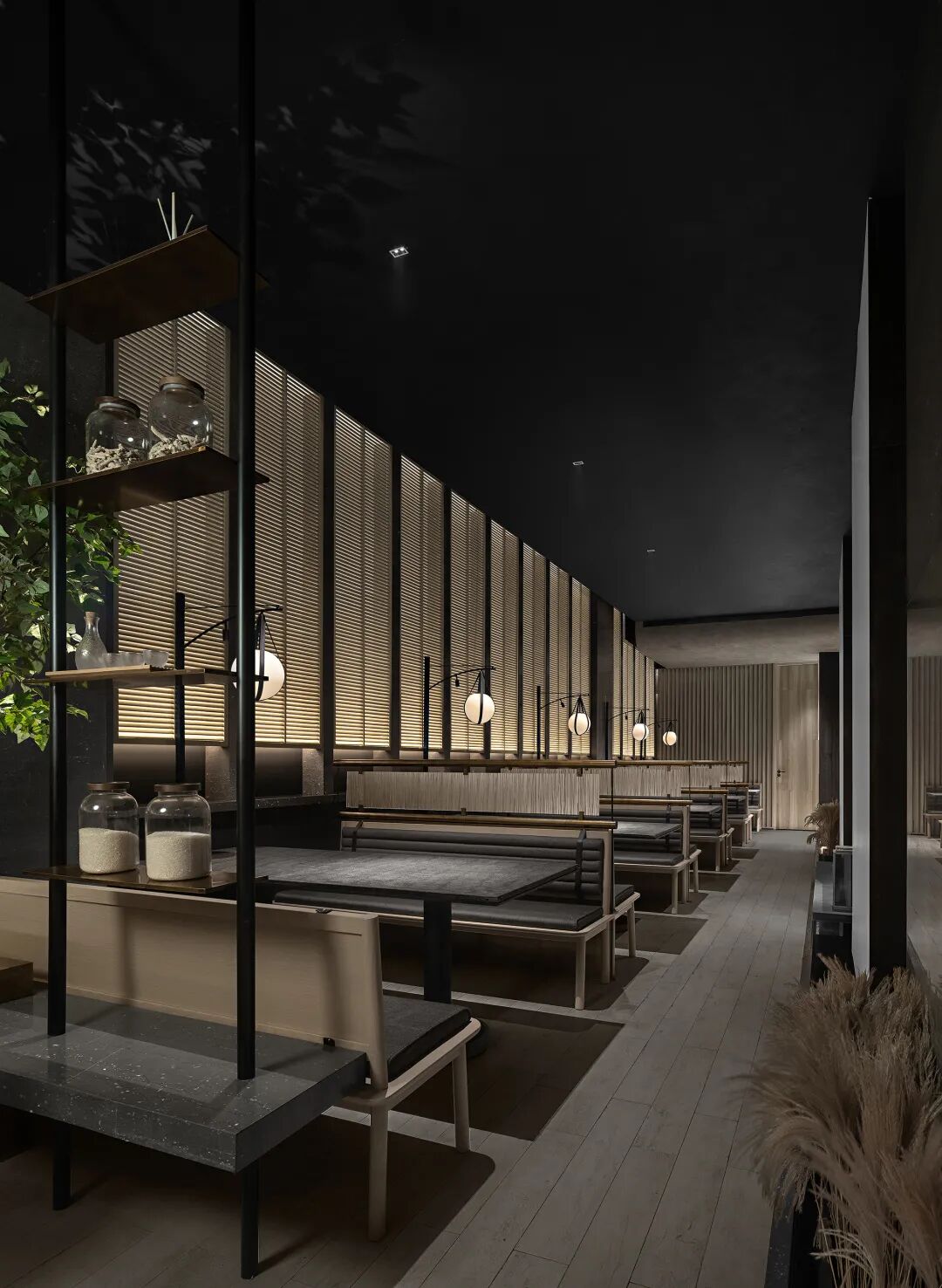 TOMO解读日本料理蕴含的文化密码,契合深圳先锋的潮流与时尚的生活样态,在设计中讲究色之自然、形之精致、器之精良,在空间营造和食的禅境中,引领食客体会慢生活的自然韵味和艺术格调。