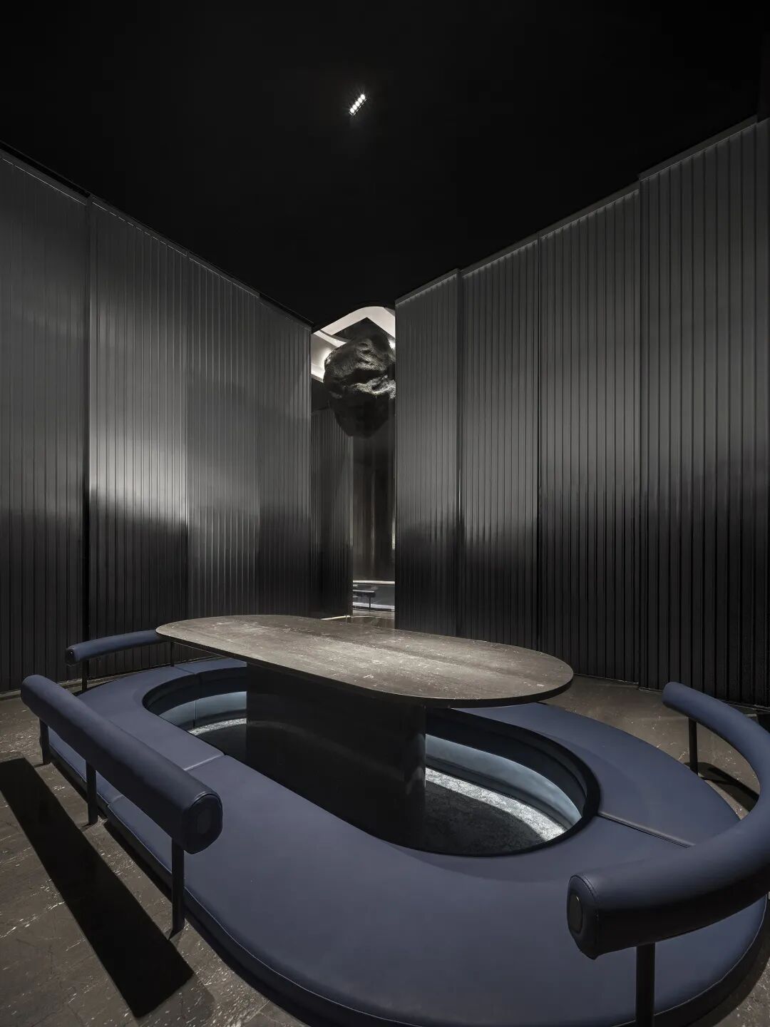 下沉式的卡座营造“船上”就餐的体验,而这精心构建的方寸天地,也给人一种别有洞天的奇妙体验,与“堂”外LED的科技感形成强烈的视觉反差。