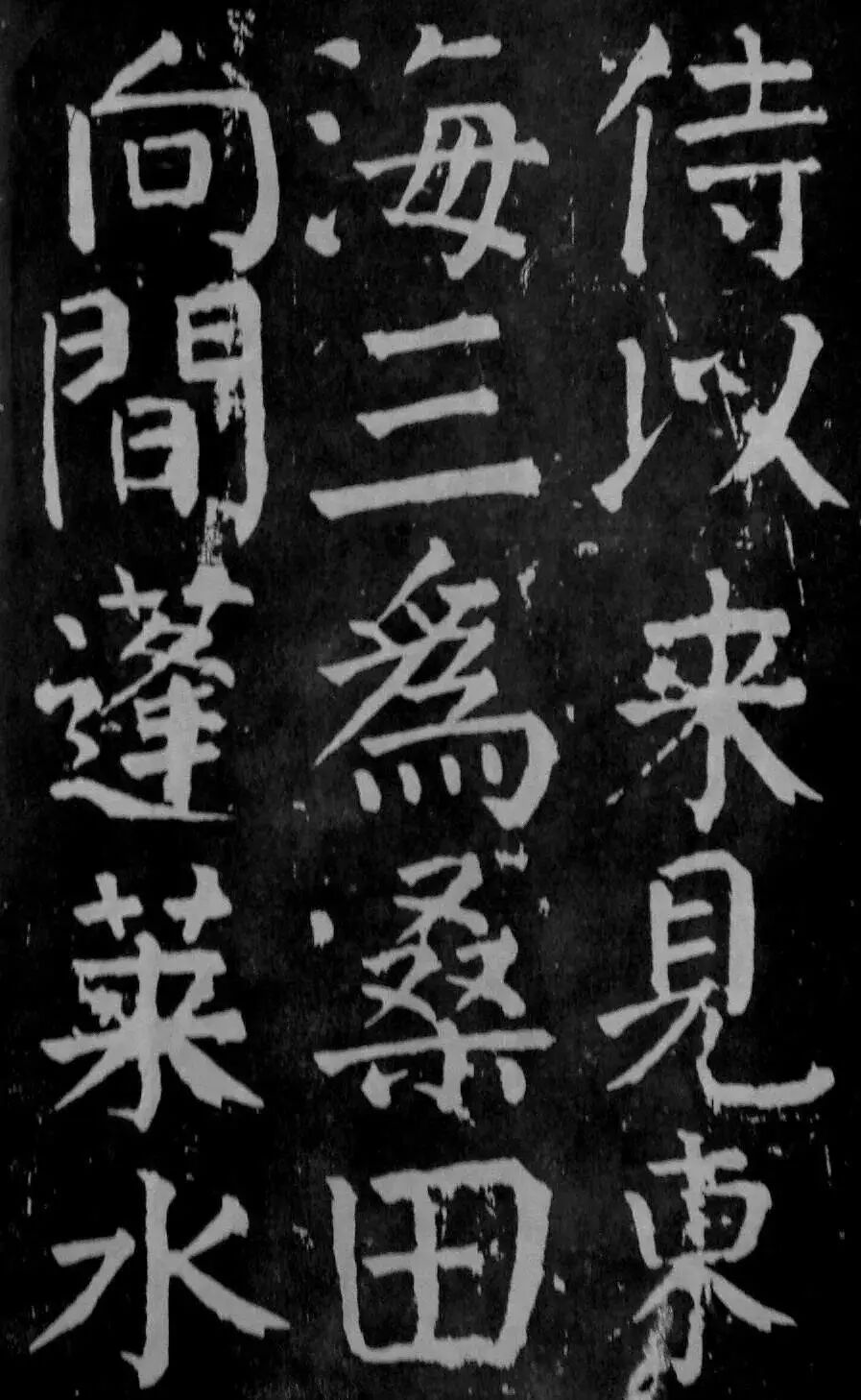 最后再将颜真卿的大字本《麻姑仙坛记》中这段文字附录于后,让你有一个很强烈的对比记忆。