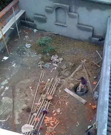 继续是平台基座。总面积是15平方左右。现在先做一个混凝土平台,比门口低20厘米左右。之后用木头搭建一个平台。