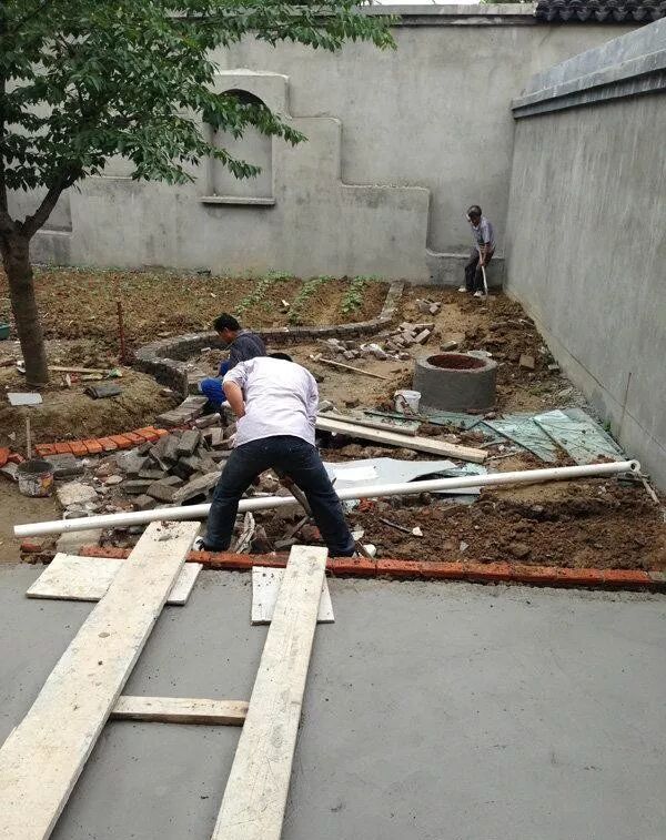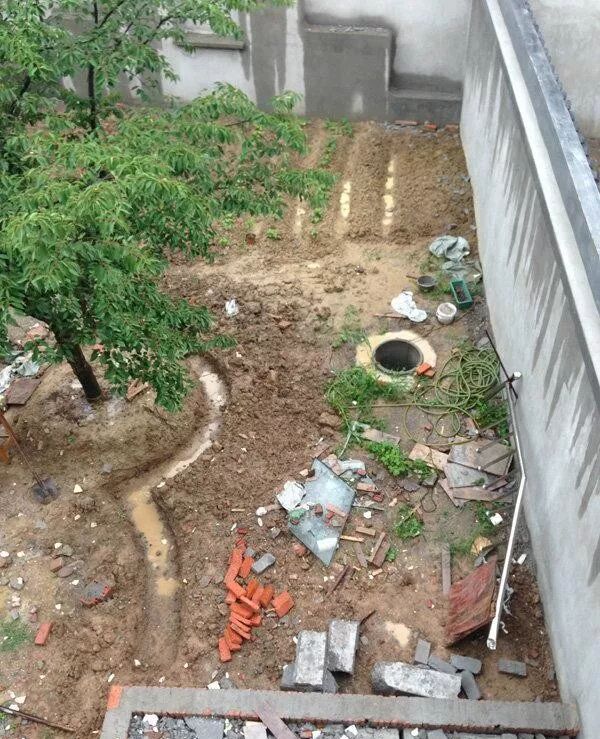 院子西面设计成水泥平台,方便以后烧烤啊,洗洗东西啊什么的。
