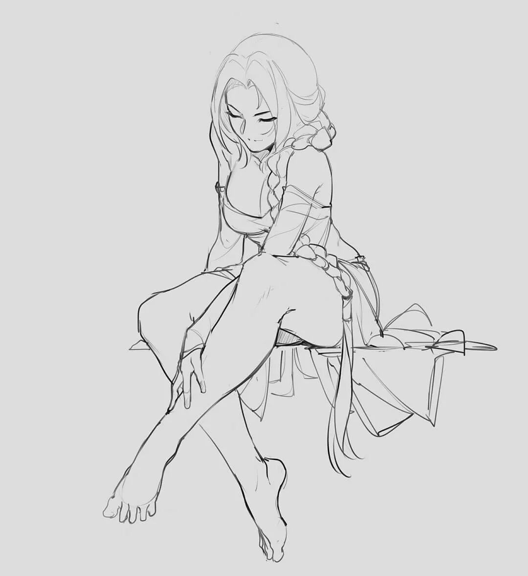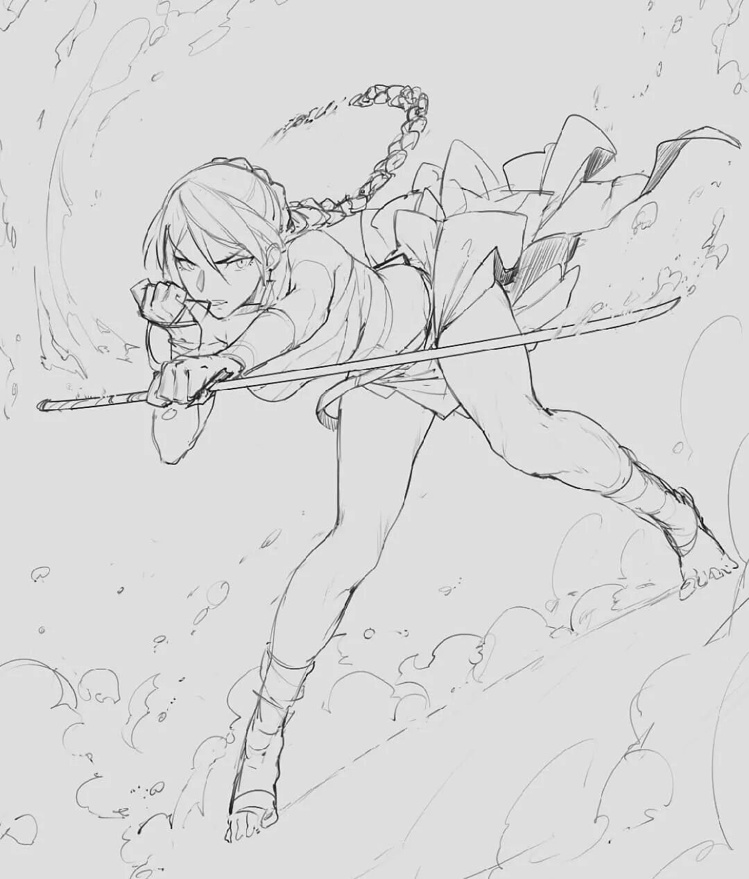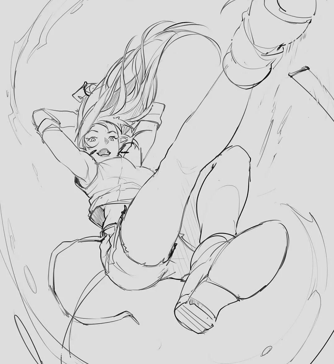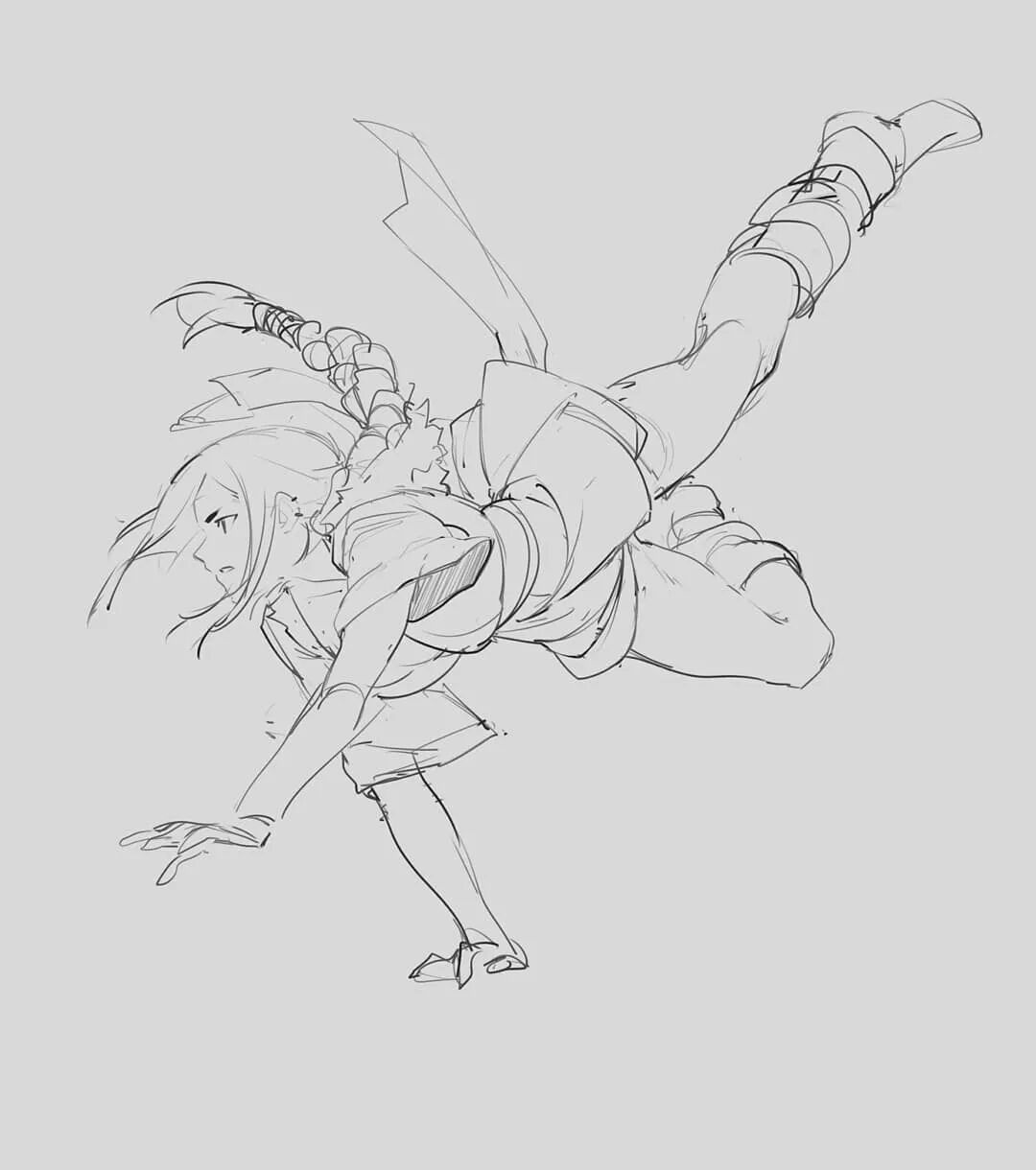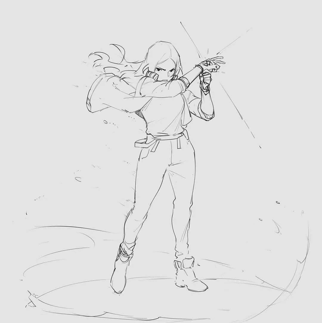 欣赏画师@SolKorra 干净利落的人物线稿,动态表现超强,透视提高必看!
