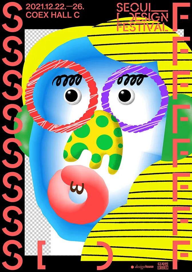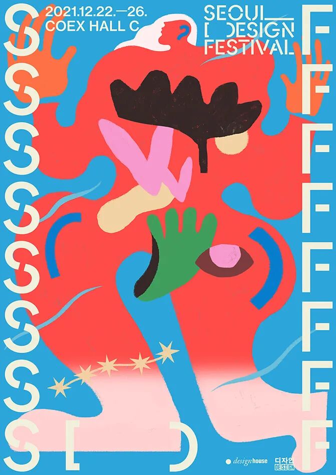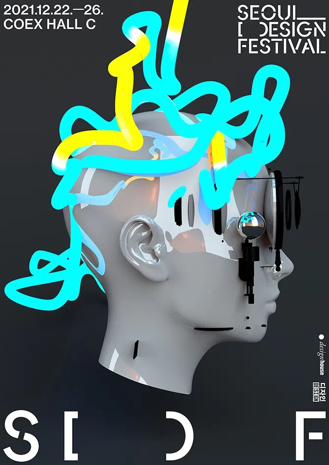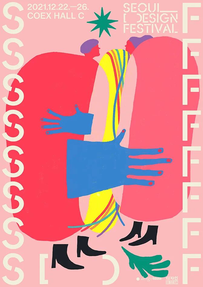 首尔设计节(Seoul Design Festival)是韩国具有代表性的设计节。首尔艺术节标志,将缩写“SDF”中的字母“D”演绎为一个括号,括号内根据表现的主题和场合可以放置相关图形符号,建立起一套灵活的视觉系统。