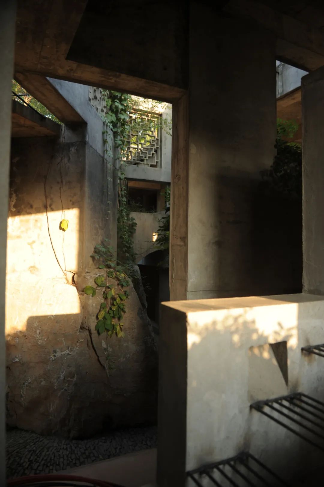 对于这个最得意的设计,董豫赣却谦称不算是自己的设计,而是结构计算的结果,因为地基是在一个窑坑上,后来堆了土,结构计算的时候,担心承重不够,在地基上加了混凝土板。加上地势南高北低,南侧本来就高半层,稍加设计,变成一个可以驻留的空间。