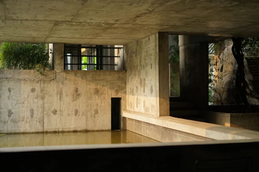 堆山的同时,引进了水,除了北侧、西侧有水环绕,他还把水也引进了院中、地下室,建筑几乎一半临水、一半接山。