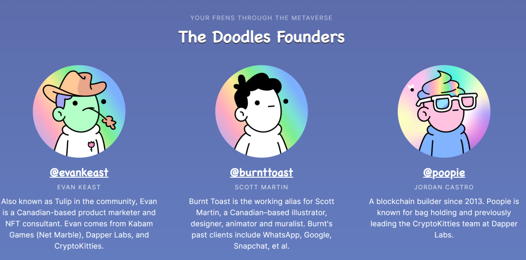 和他一起推出Doodles的Keast和Castro则是领导OG NFT项目CryptoKitties的团队成员。