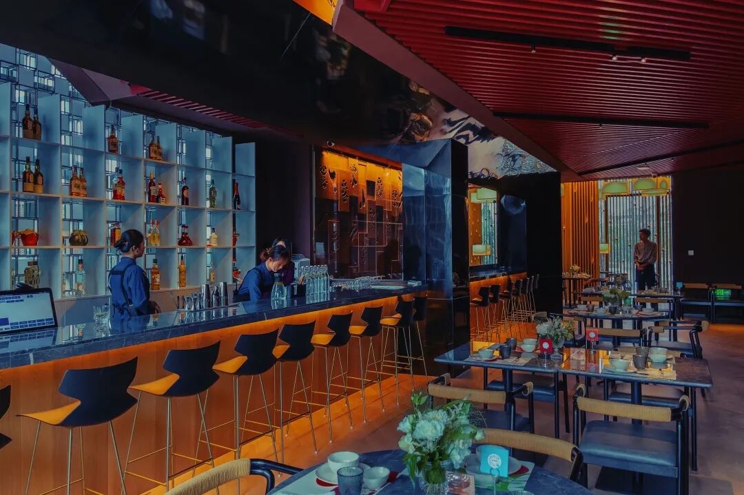 此次项目面积1400㎡,分为上下两层。从功能划分来看,一层主要是零售带简餐,二层则兼备了餐饮和酒吧的功能。
