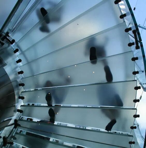 玻璃楼梯,是采用经过化学处理、钢化和夹层的特殊建筑玻璃加工制作的一种楼梯,楼梯的承重构件,如支柱和结构梁、踏步以及扶手围栏等,全部采用玻璃制成,只有少量金属固定件或无固定件安装。