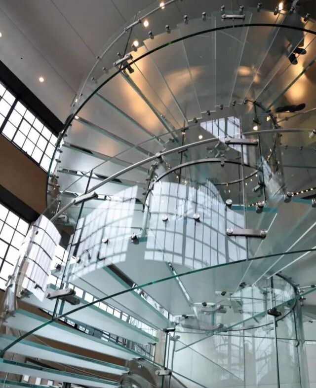 a、玻璃楼梯最终可否实现所需效果的重点在于结构形式及成本预算,如若不想被结构形式或者造价限制住,又想达到玻璃楼梯的装饰效果及特殊的造型,可以考虑楼梯的支柱和结构梁采用钢结构,踏步、栏杆栏板等采用玻璃。