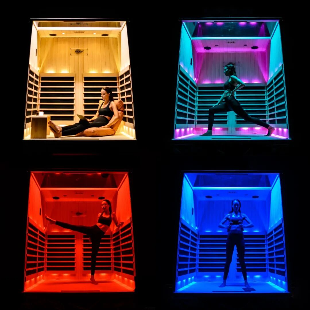 在这个具有PureInfra®国际前沿技术的空间中,还同时配备80年树龄的高级自然原木,源源不断释放负氧离子帮助抗氧化,独家7种色光疗愈舒缓情绪,立体声蓝牙音箱系统,可以在 dose 中看剧听歌。
