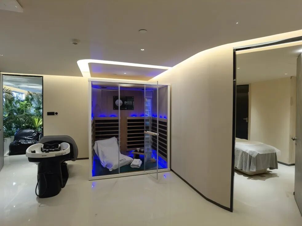在中国的许多豪宅及私人会所办公空间中,这一趋势也得到许多有国际生活背景业主的追捧。中国深圳室内设计协会在最近的作品中说到:“后疫情时代健康空间已是必要空间。在业主的健康要求下,养生阁会所项目我们融入了红外线spa产品,可以在里面冥想、瑜伽、听音乐等。”让客户体验Dose以科技打造的健康生活方式,享受健康及身心洗礼,释放累积的疲惫,净化慌乱的思绪,找寻最真的自我。”