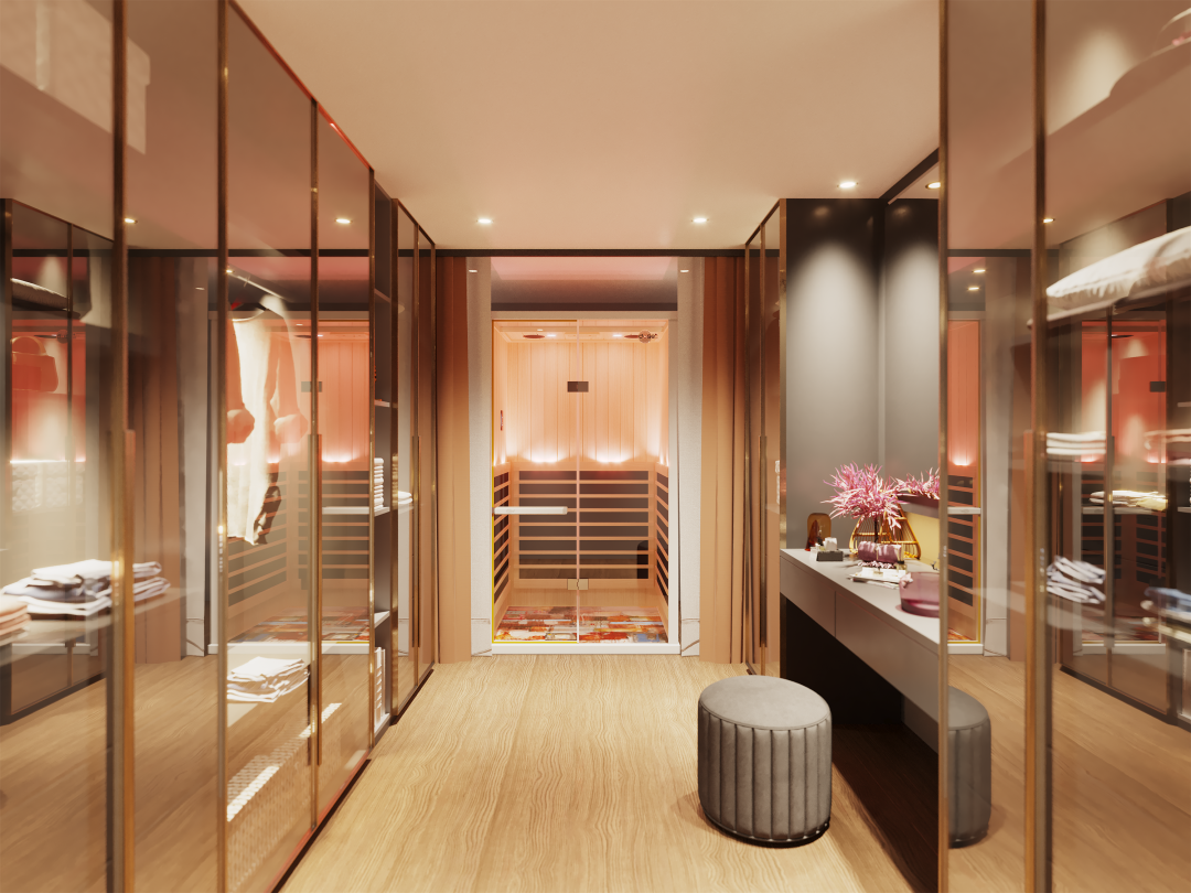 现在,她几乎每天都使用这个空间,要么进行干热训练,要么进行在线健身课程。当她谈到她的选择时说:“红外线SPA有助于我进行身体的重金属排毒,以及排出残留的艾巴氏病毒,尤其是对于那些需要特别解决自身免疫问题的人,我把没用的空间变成了我经常使用的空间。”