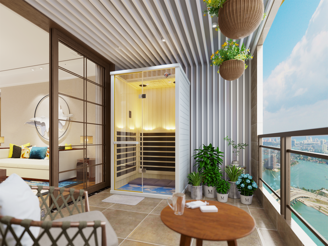 dose红外线SPA 通过与建筑室内设计师合作长达8年的研发时间,将北欧设计融入到极致的空间,通过垂直空间的大师设计,结合自然采光与减少空间压抑的精密计算,将空间锁定在1.22㎡(dose mini)与2.62㎡(dose plus)。dose红外线SPA房每一台拥有多项国际专利,包括全球电磁辐射安全认证的低电磁加热专利,磁力锁定结构专利等,普通家用电仅相当于一个电吹风的耗电量,因此实现了非卫浴空间的便捷安装,目前已运用于室内客厅、卧室、书房、阳台及衣帽间等: