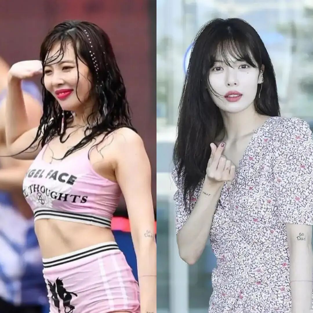 按照这个逻辑,穿着更大胆、化着烟熏妆大红唇的反而更不容易成为受害者。对比泫雅这两张照片,差不多颜色的衣服,同一个人,似乎右边的乖乖女风显得“更好欺负”一些。