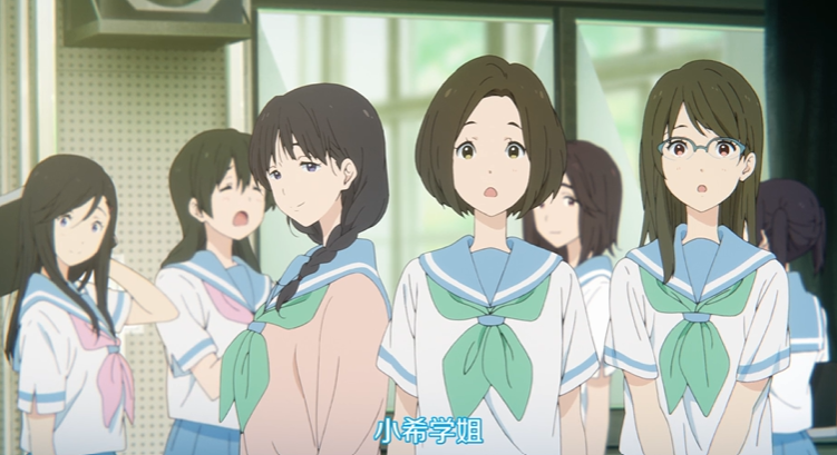 回到两位女主,尽管二人成为好朋友,但是希美不仅仅有霙这一个朋友,她还要参与其他社交,每到此时,便又总留下霙孤身一人,只能在远处默默观望。