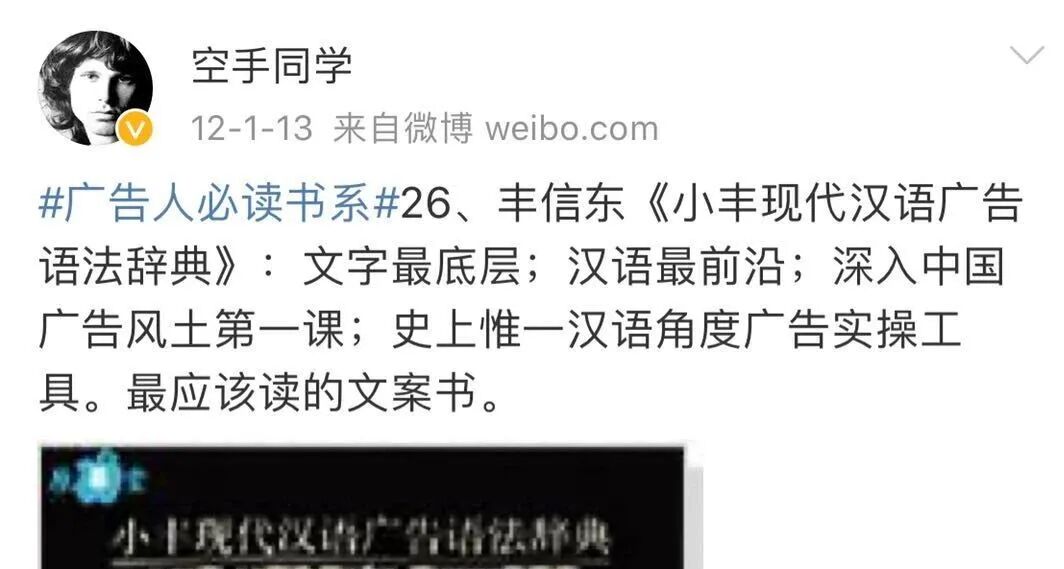 我不奇怪小马宋、空手推荐这本书,却没料到,写出“自律给我自由”,一向以严酷示人的自由文案Marcus,会专发一条微博,夸这本文案书。